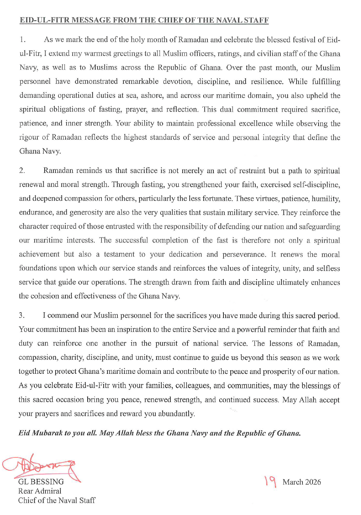 "I am writing to thank the Government of Ghana for its contribution to MINURSO, by deploying highly qualified and capable military observers. I wish to commend, in particular Commodore (CDRE) Faustina Boakyewaa Anokye for her excellent work while serving MINURSO. In particular, she recently has been instrumental in leading a politically sensitive and complex negotiation at the highest level with the Royal Moroccan Army. I am proud of her work and proud of having had the opportunity to take the benefit of her exceptional professional qualities. The Government and the Armed Forces of Ghana can be proud of Commodore Faustina Boakyewaa Anokye." - ALEXANDER IVANKO, THE SPECIAL REPRESENTATIVE OF THE SECRETARY –GENERAL (HEAD OF MISSION)
