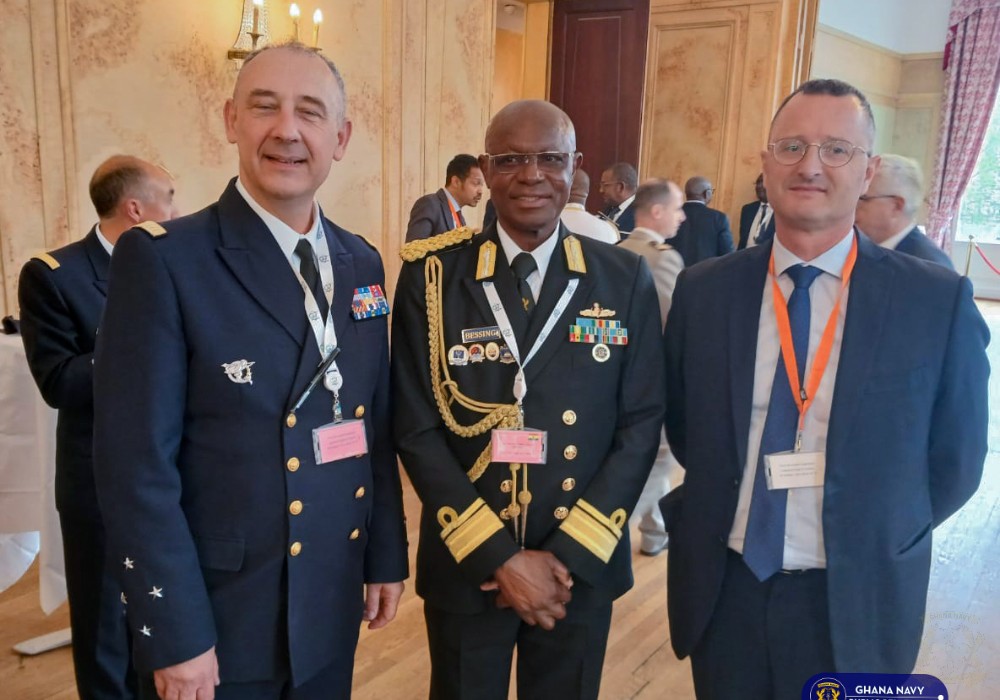 He attended the high-level forum alongside the Deputy Minister for Defence, Honourable Ernest Brogya Genfi, where G7 nations and partner states focused on coordinated strategies to enhance maritime stability across West and Central Africa.In an engagement with the French Chief of Navy, Rear Admiral Bessing highlighted ongoing Ghana Navy operations supported through cooperation with France, including joint patrols, maritime surveillance, training exchanges, hydrographic collaboration, and coordinated regional exercises. He underscored Ghana’s commitment to deepen capacity building, strengthen riverine and hydrographic capabilities, and enhance operational readiness through initiatives aimed at improving professional competence, resilience of naval personnel, and maritime domain awareness across the Gulf of Guinea.The engagement reinforced Ghana’s commitment to sustained international collaboration aimed at strengthening maritime security and ensuring stability across the Gulf of Guinea.